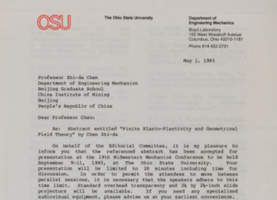 • 1984年唐孝威寫給丁教授的信