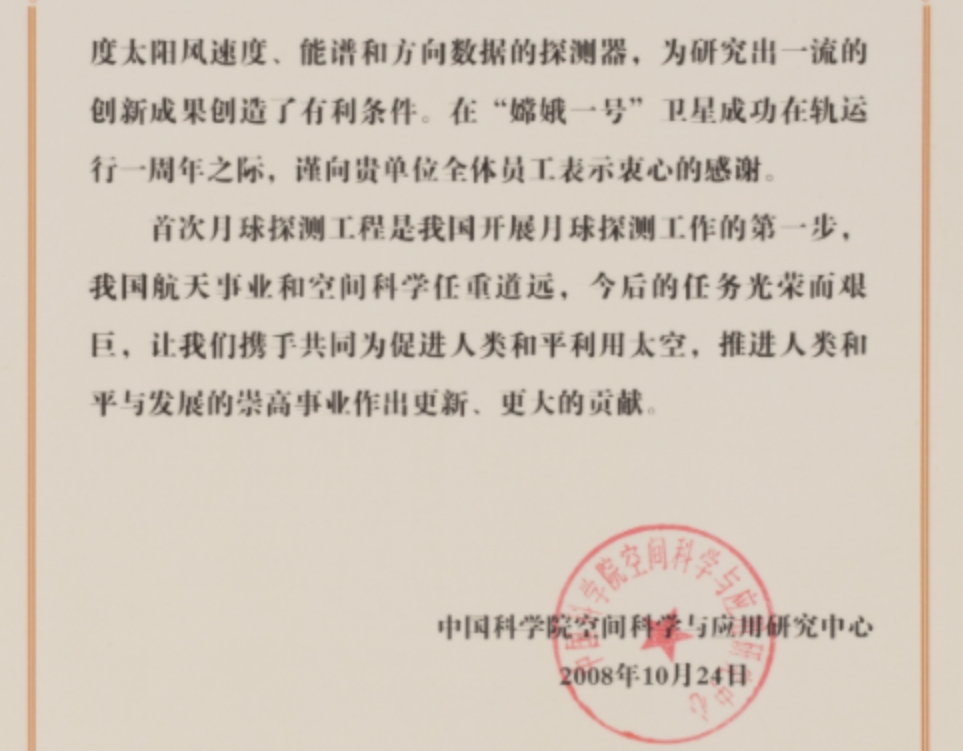 • 中國科學院空間科學與應用研究中心感謝信